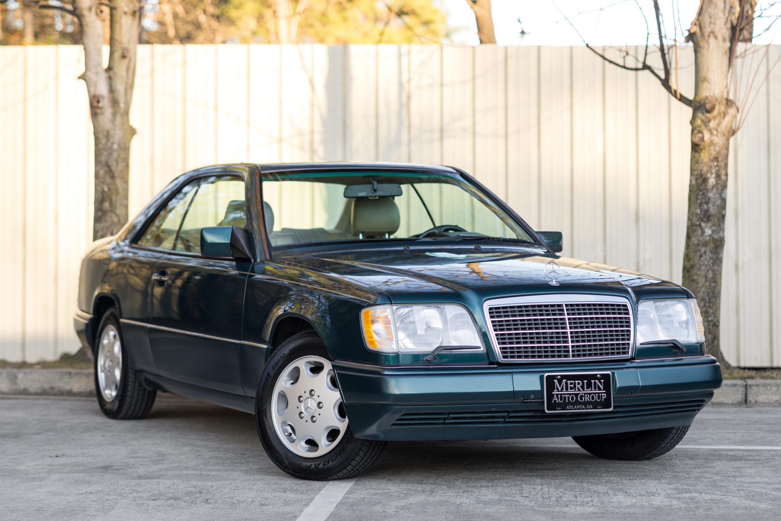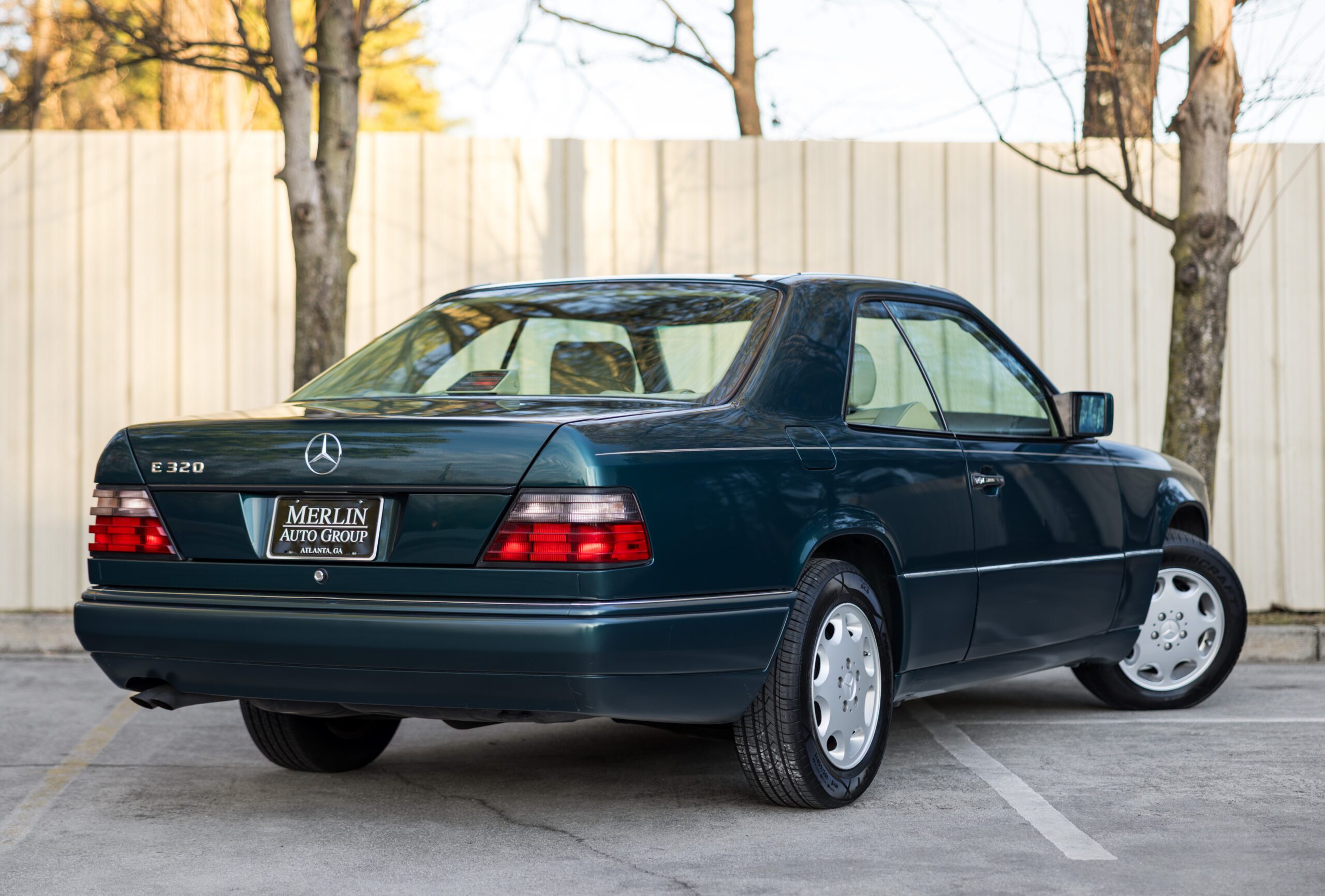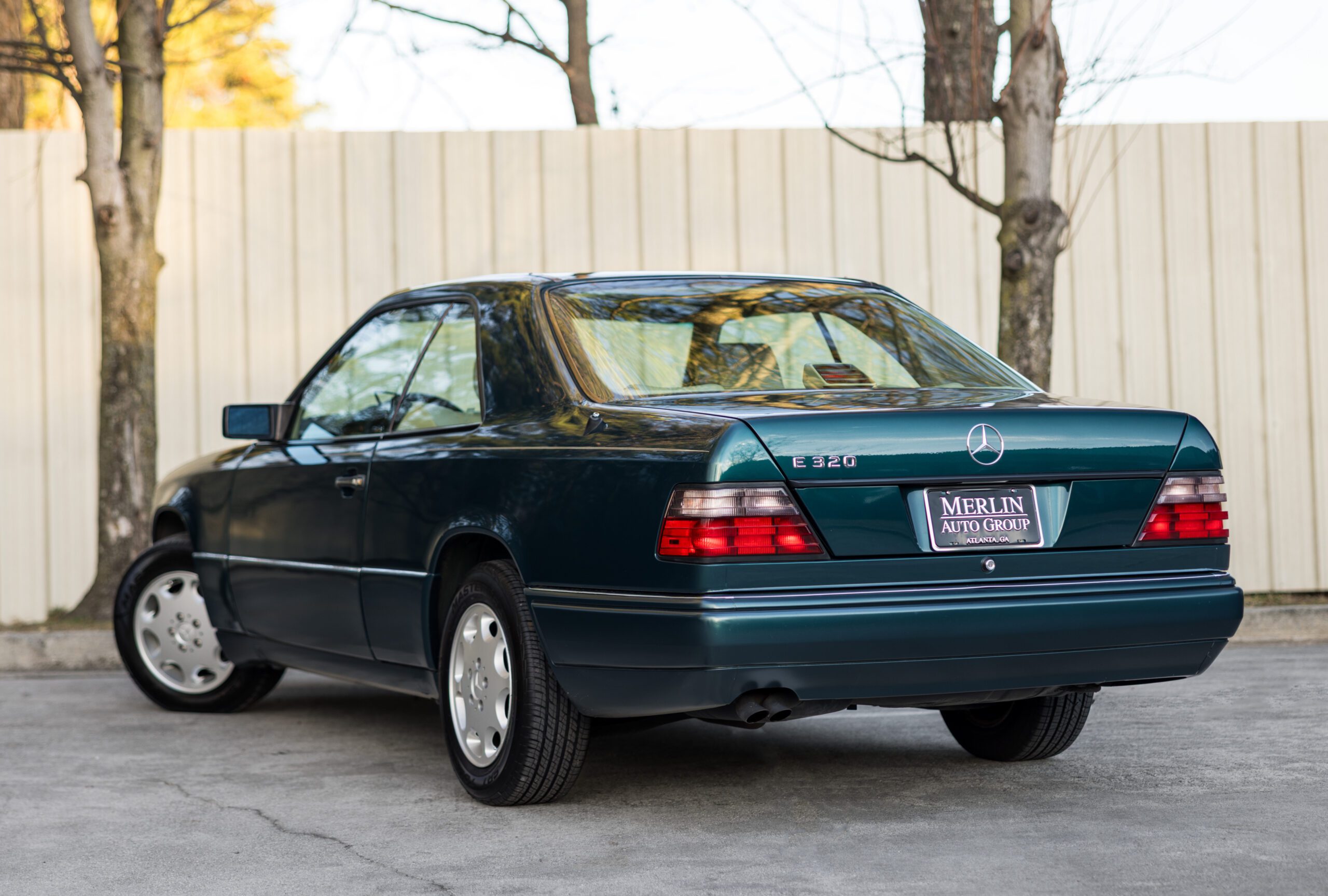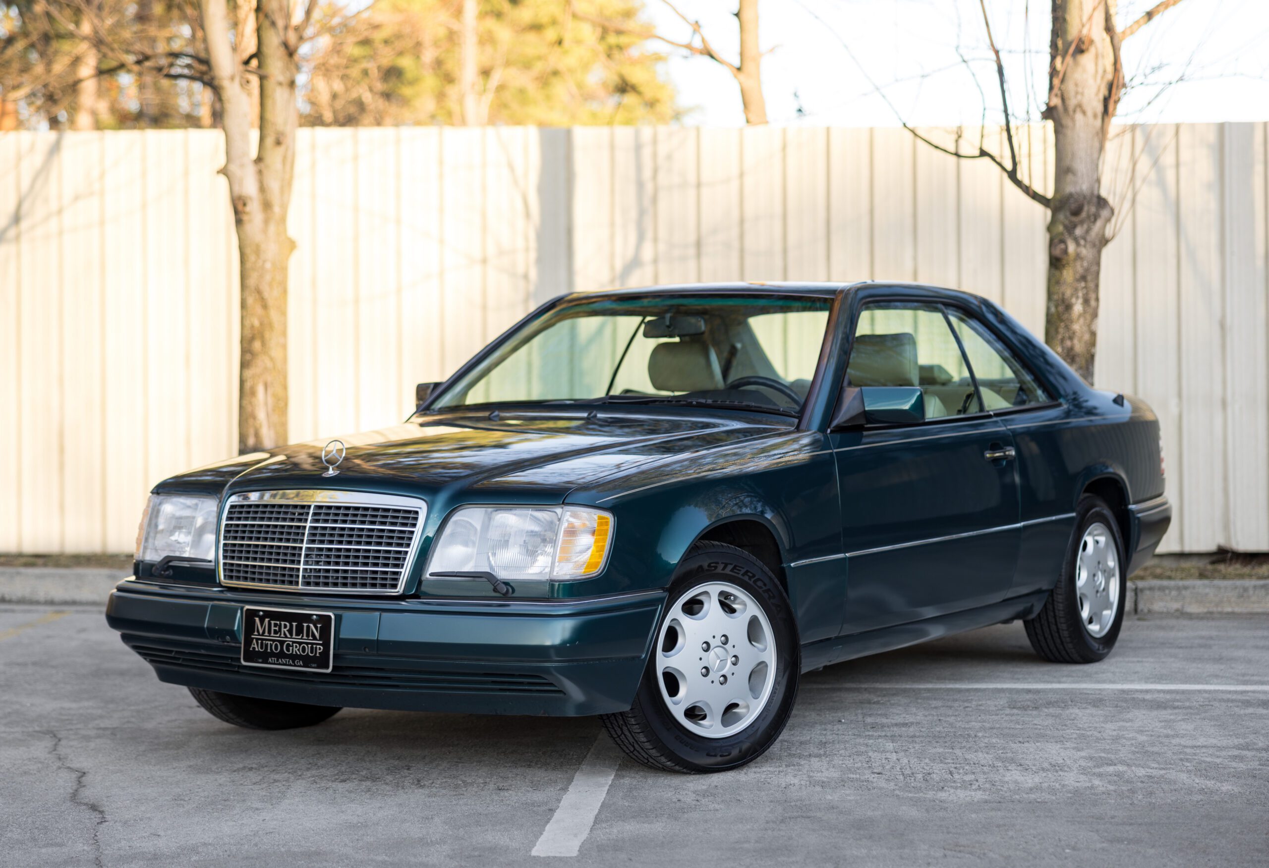 Finished in a dark emerald green over a distinctive black and cream interior, this 1994 E320 coupe is a beautifully preserved example of the legendary W124 chassis. The odometer currently displays 65,750 miles.