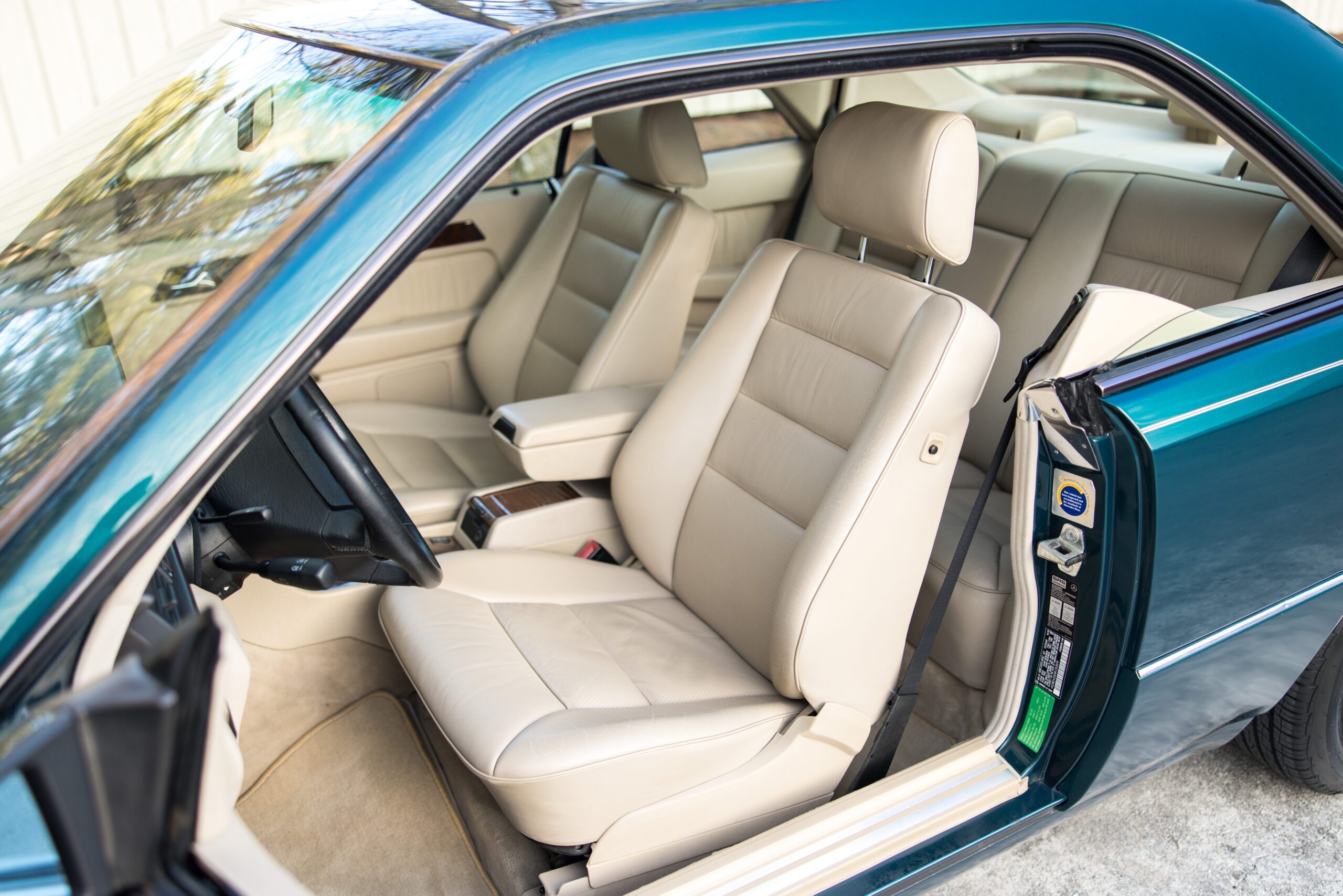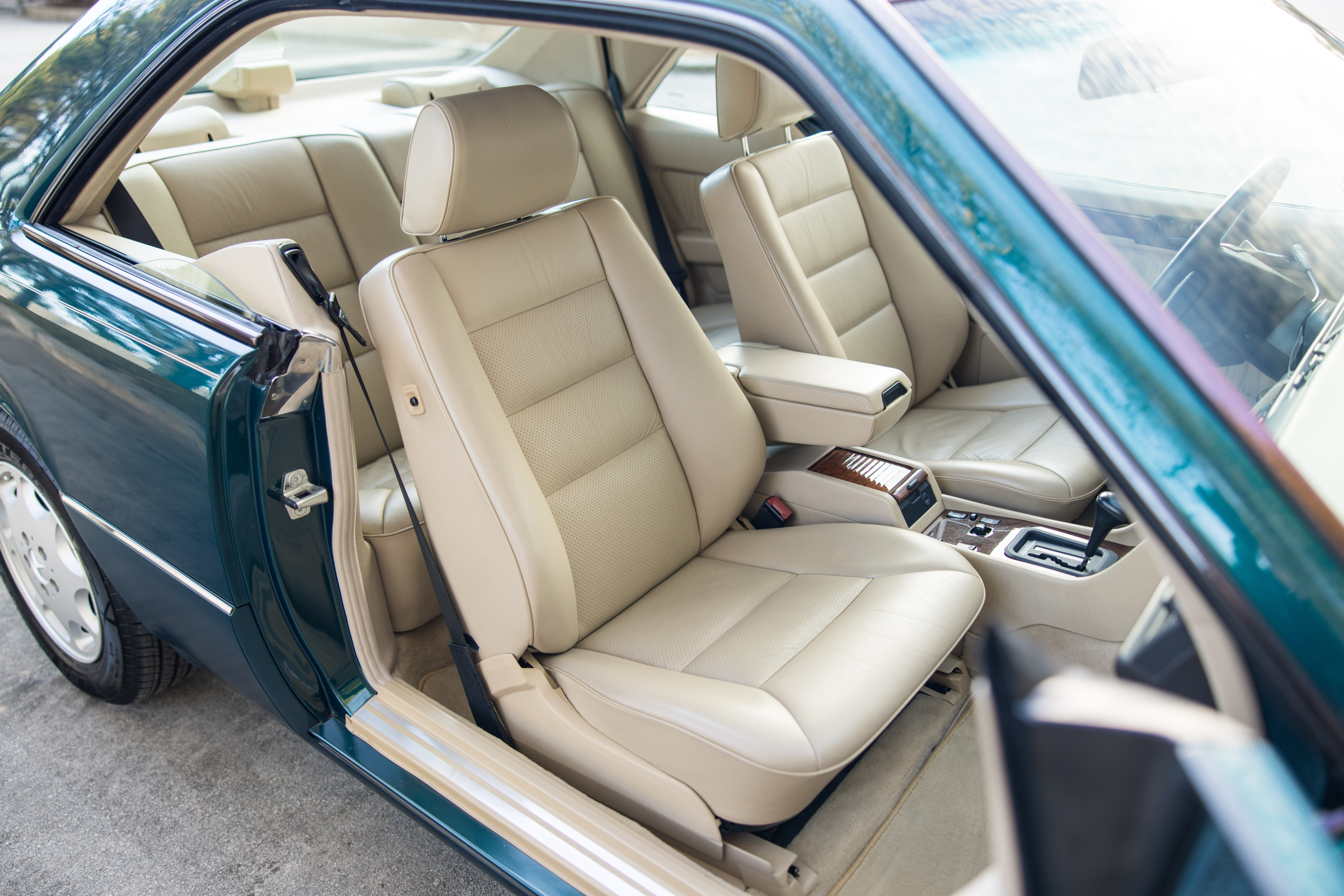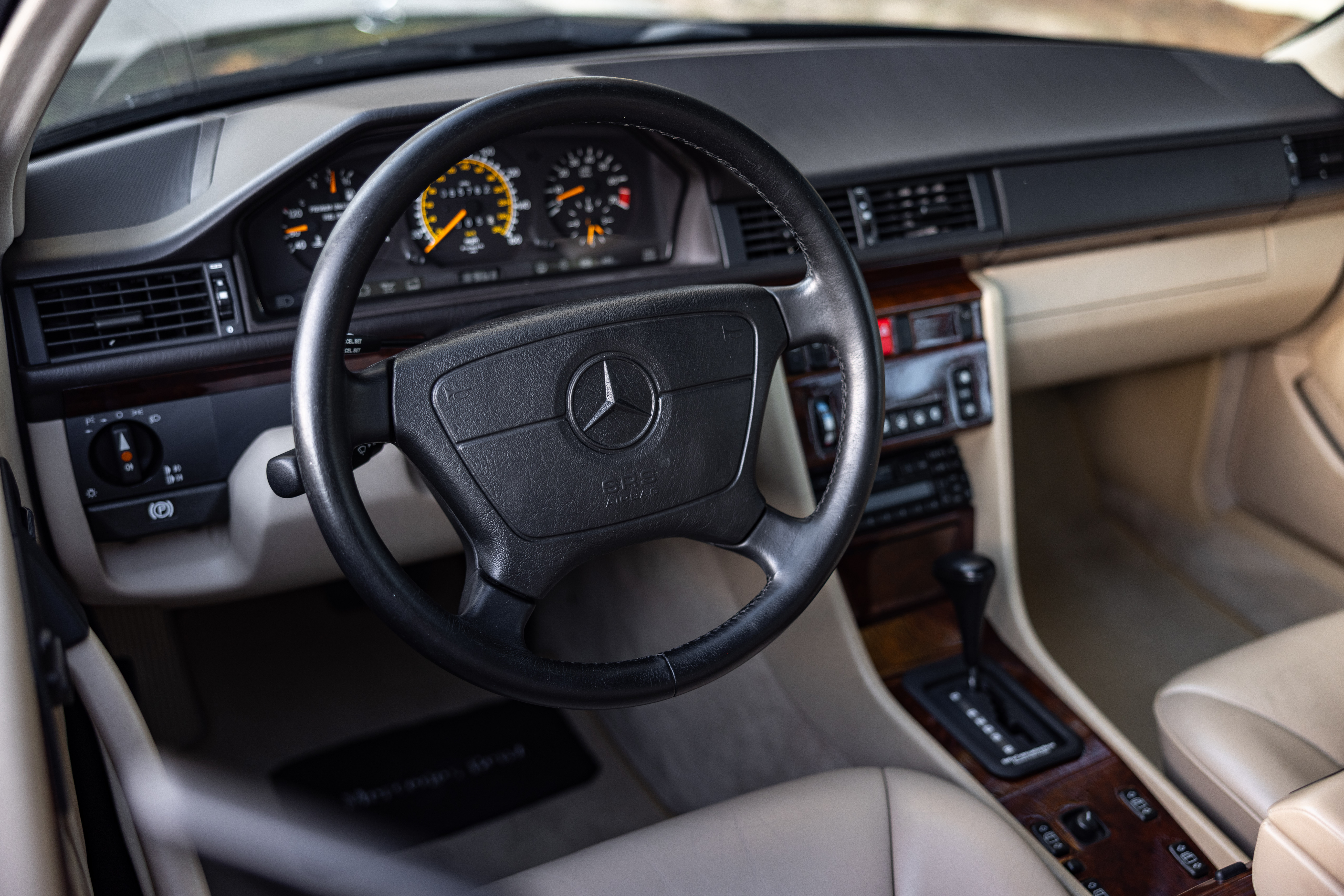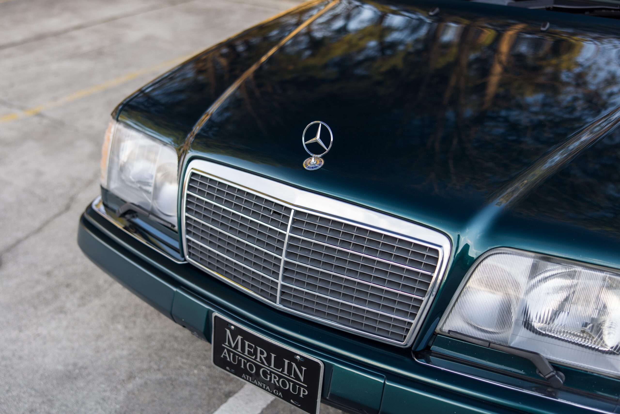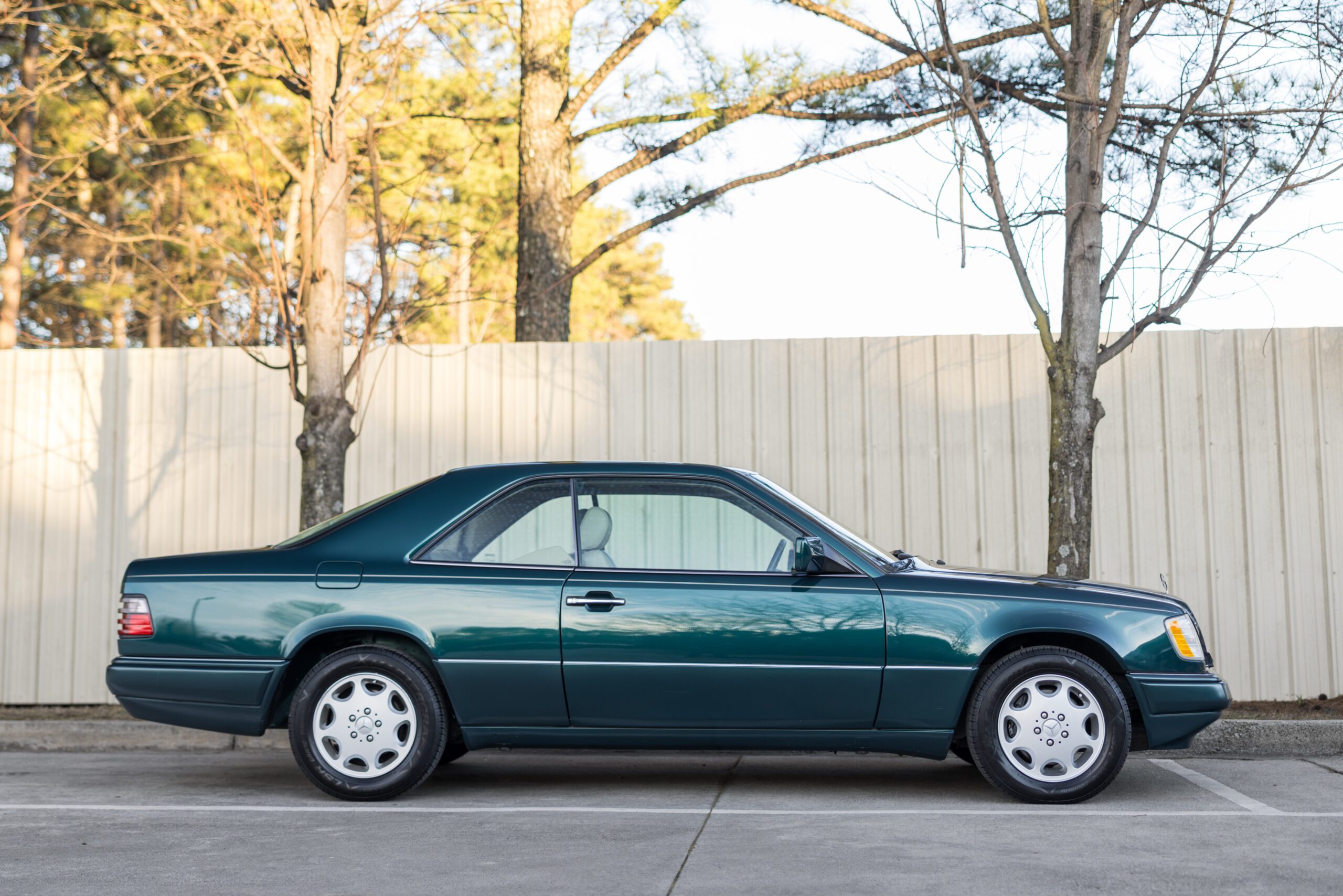 Finished in a dark emerald green over a distinctive black and cream interior, this 1994 E320 coupe is a beautifully preserved example of the legendary W124 chassis. The odometer currently displays 65,750 miles.